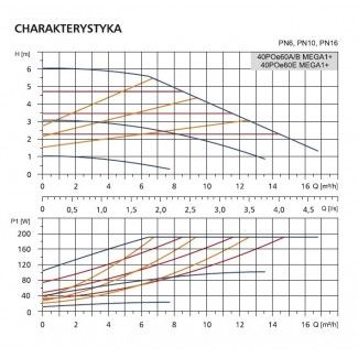 Model 40POe60A/B MEGA1+ charakteryzuje się znakomitą wydajnością i energooszczędnością. Maksymalna wydajność 250 l/min zapewnia szybki obieg czynnika w dużych instalacjach, a wysokość podnoszenia 6 m gwarantuje efektywne pokonanie oporów hydraulicznych nawet w rozbudowanych układach. Pompa ma rozstaw montażowy 220 mm oraz kołnierzowe przyłącze DN40, dzięki czemu jest łatwa w montażu i kompatybilna z większością standardowych układów rurociągowych.